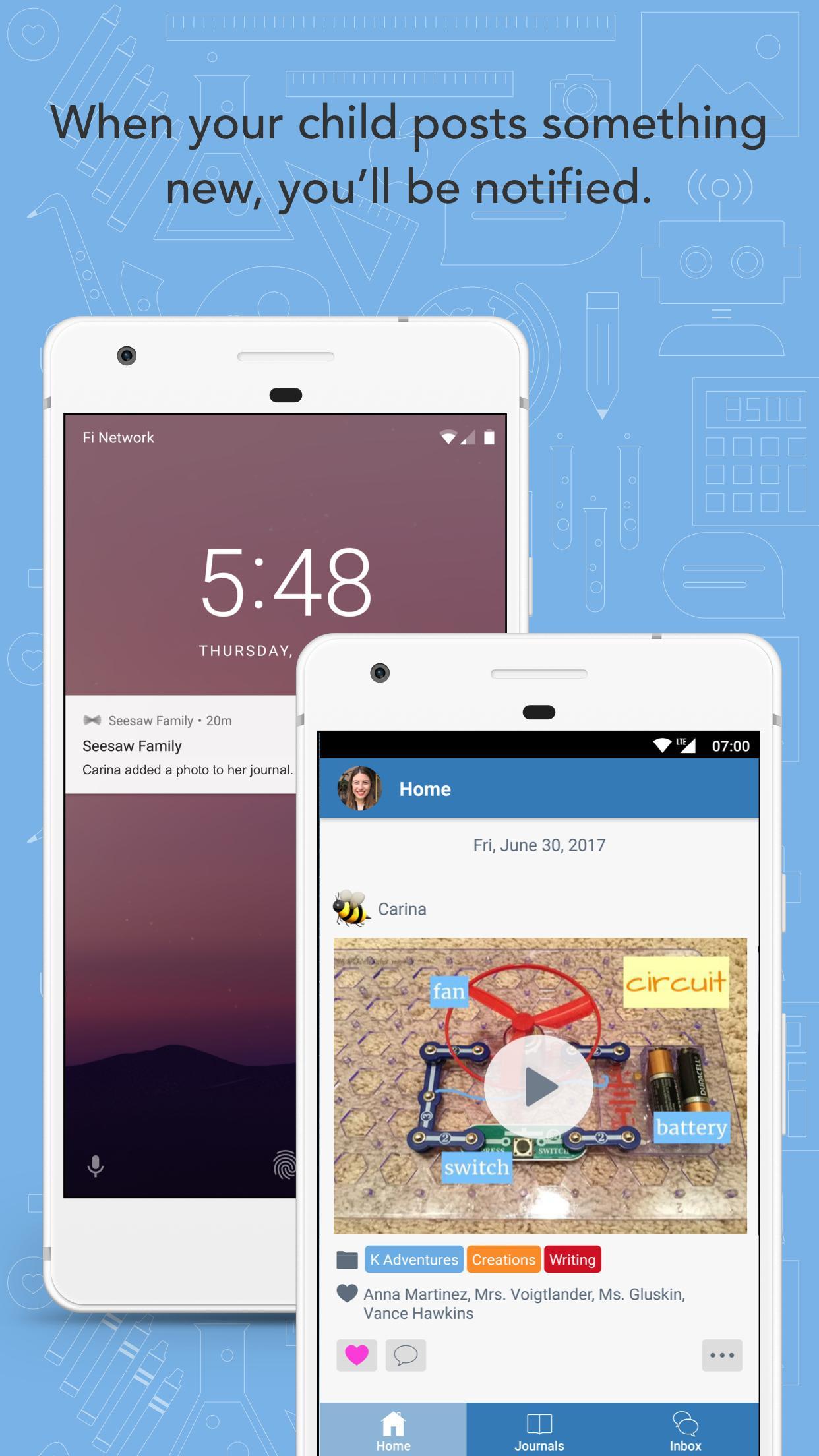 Wenn Ihr Kind sein Journal wie ein Foto, ein Video oder eine Zeichnung zu einem neuen Beitrag hinzufügt, werden Sie automatisch benachrichtigt. Befolgen Sie die Benachrichtigung, um den Neuzugang in das Journal Ihres Kindes zu sehen und deren Lernen zu unterstützen.
