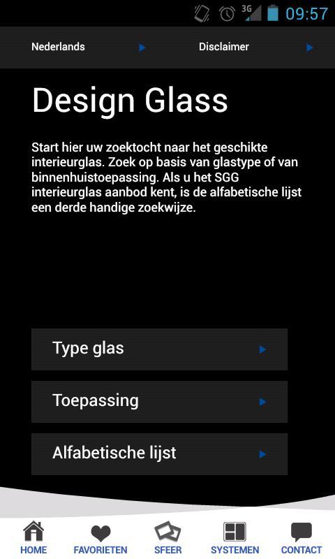 Die Designglas -App ist die Anleitung bei der Suche nach dem geeigneten Innenglas.