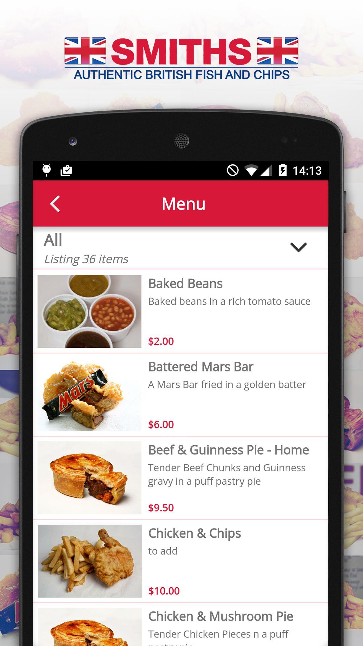 Wir freuen uns darauf, Smiths zu einem unvergesslichen Besuch zu machen und hoffen, dass Sie durch unsere Politik, allen Kunden die gleichen hervorragenden Servicestandards zu bieten und nur die besten Qualität importierten Fisch und Kartoffeln zu verwenden, zurückkehren und uns immer wieder besuchen, um unsere qualitativ hochwertigen "Fish & Chips" zu genießen!