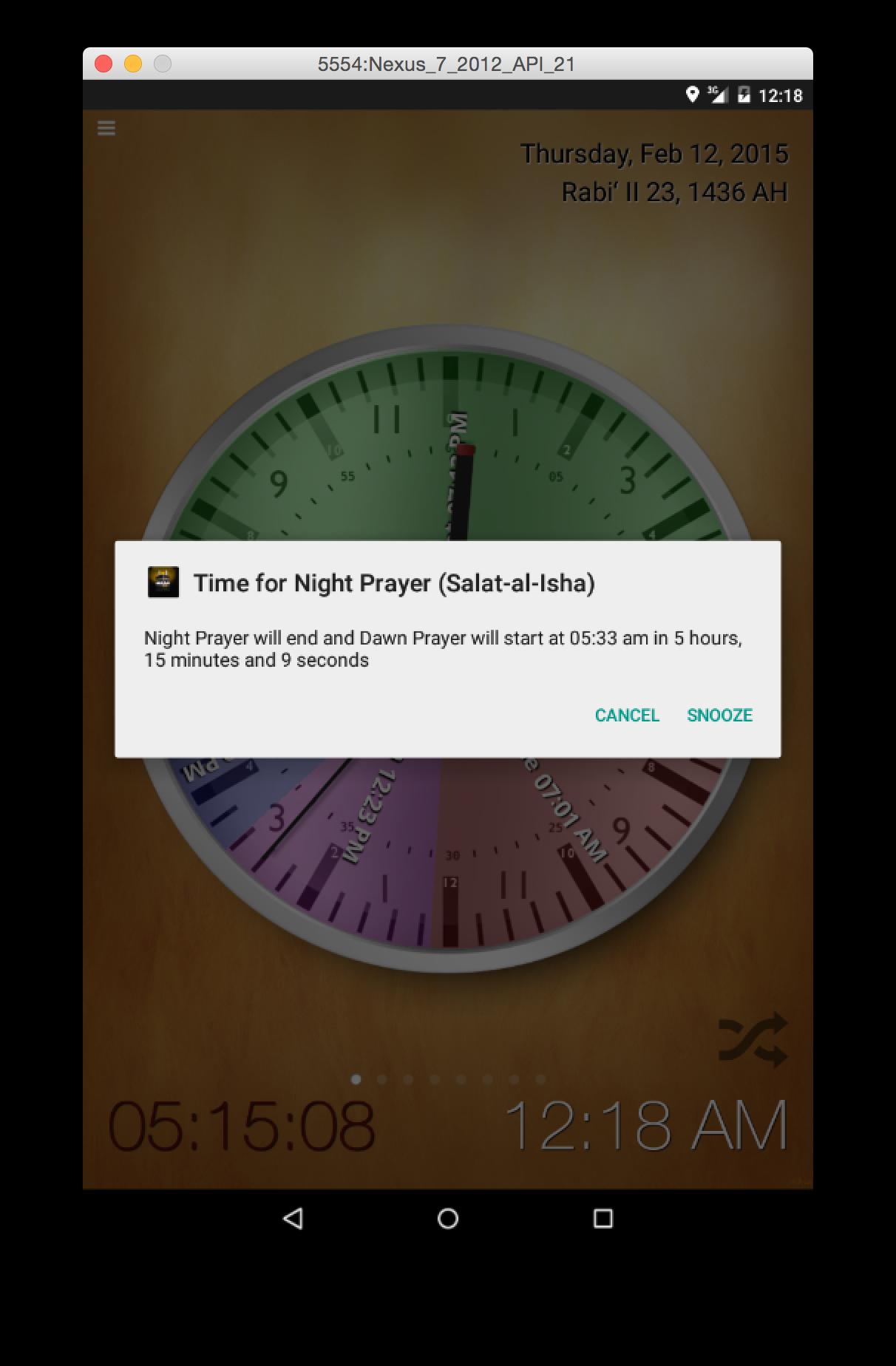 Dies ist eine sprechende Gebetsuhr und wenn sie aktiv im Vordergrund läuft, sagt Ihnen die App die Zeit mit Stimme, wenn es Zeit zum Beten ist oder wenn Sie in die Uhr doppelt klicken.