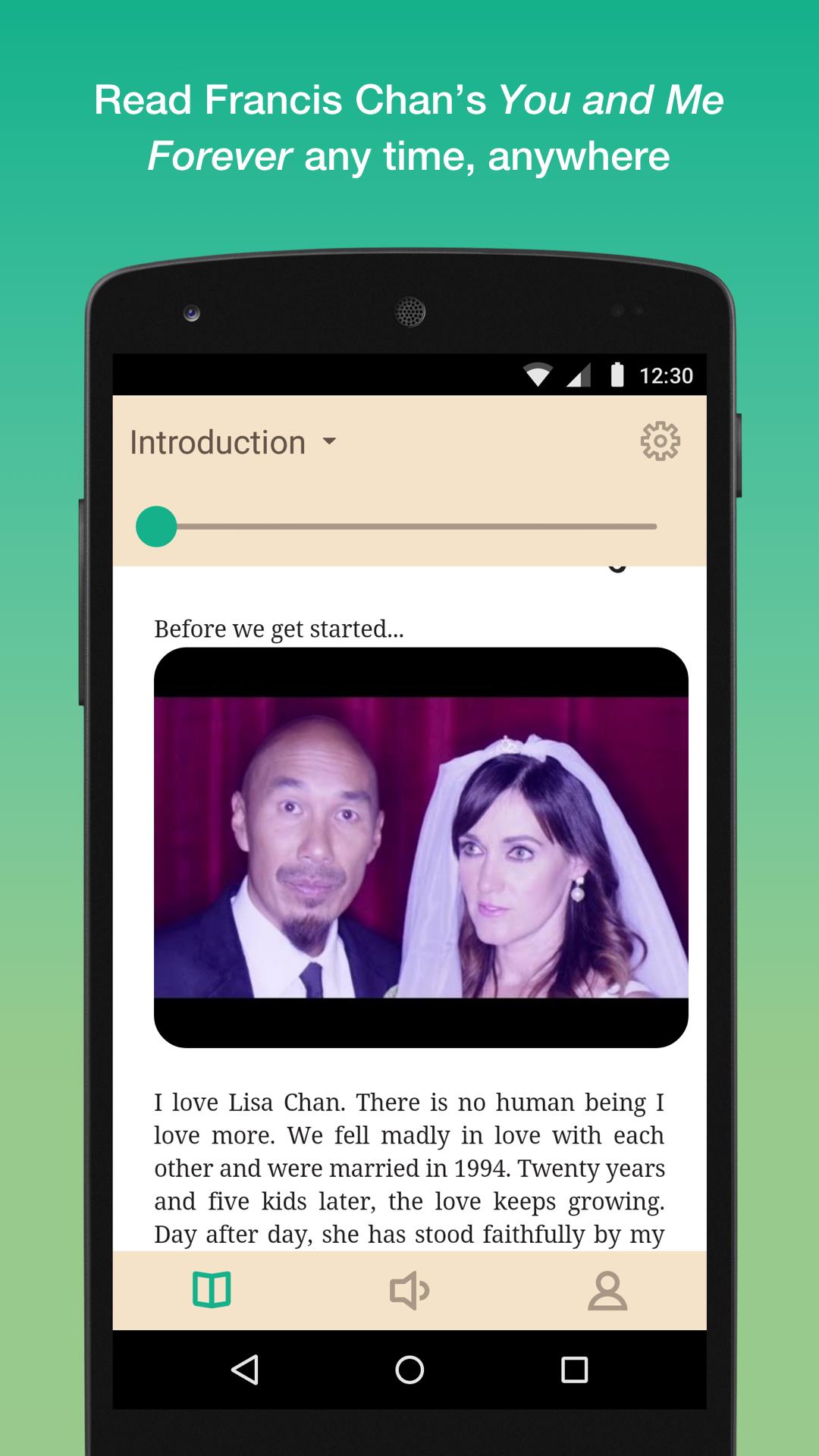 Mit der App You and Me Forever für Android können Sie das Buch lesen und aufzeichnen und Ihre Gedanken teilen. Setzen Sie dann das, was Sie lesen, durch die Diskussion mit Ihrem Ehepartner oder Freund in die Tat um.