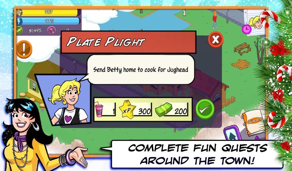 Riverdale wurde zerstört. Fenster sind gebrochen, Bäume sind gestorben und unansehnlicher Müll hat sich angesammelt! Archie und seine Freunde brauchen Sie, um zu retten und Riverdale zu leuchten wie neu! Helfen Sie Archie, die Stadt wieder aufzubauen und neu zu dekorieren. Erledigen Sie lustige Quests und Aufgaben in der Stadt, um voranzukommen. Delegierterarbeit an Archie, Betty, Veronica, Jughead, Reggie und Dutzende anderer bevorzugter klassischer Comic-Charaktere. Je mehr Charaktere Sie sich anfreunden, desto schneller können Sie Aufgaben erledigen. Helfen Sie Riverdale in diesem süchtig machenden Stadtgebäudespiel.