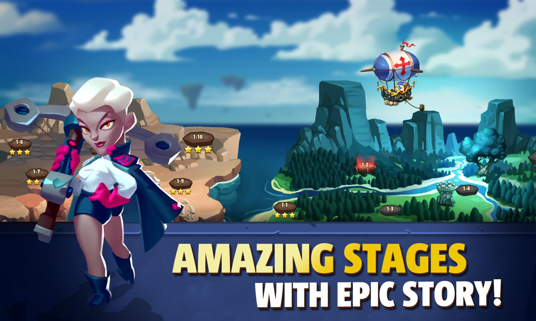 Vorantreiben! Reise mit Million Spielern in einer technischen und magischen Welt, indem sie ein mächtiges Heldenteam aufbauen, kämpfen gegen den bösen Lord Hiro mit Weisheit und erfahrener Operation.