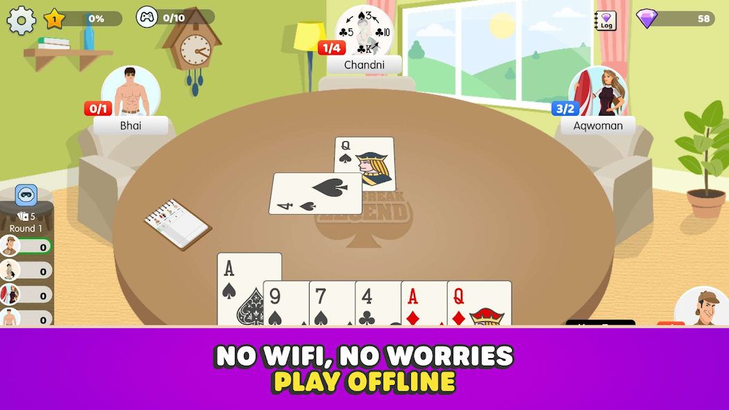 Mit leicht zu larnenden Regeln und aufregendem Gameplay ist Callbreak ein Favorit unter Kartenspielbegeisterten in Indien, Nepal, Bangladesch und in anderen südasiatischen Ländern.