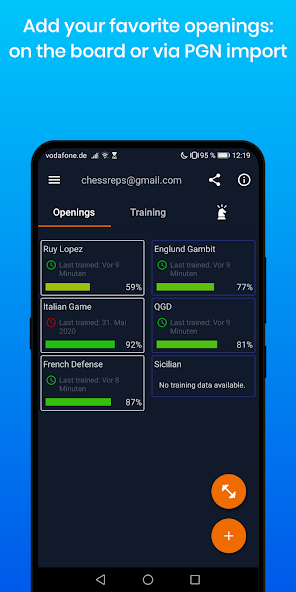- Fügen Sie einfach und schnell alle Ihre Öffnungen hinzu - auf der Tafel oder über den PGN -Import.