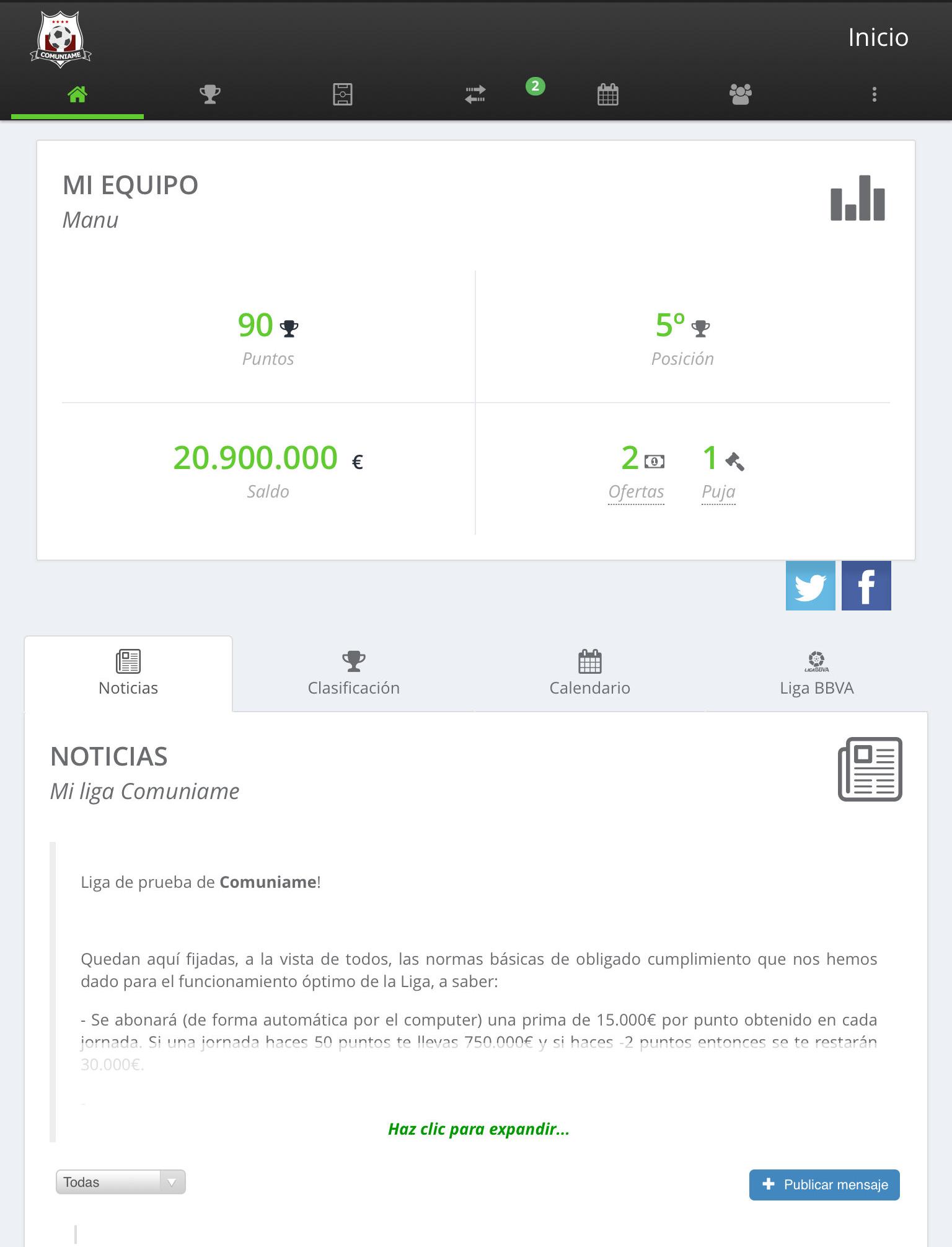 Comuniame ist ein Fußballsimulator, bei dem Sie ein Team mit echten Spielern in einer virtuellen Liga leiten und gegen Ihre Freunde antreten, weil Sie das beste Team bekommen und die Liga gewonnen haben.