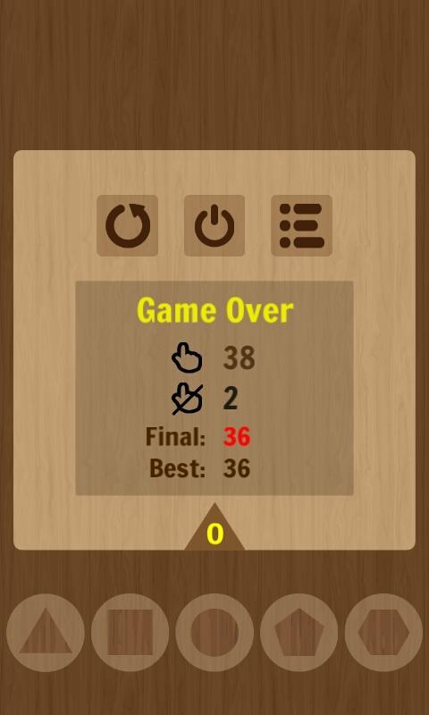 - Wenn Sie eine Holzform aus Ihren Augen lassen, verlieren Sie ein Leben. Sie haben am Anfang 3 Leben. Alles zu verlieren bedeutet ein Spiel.