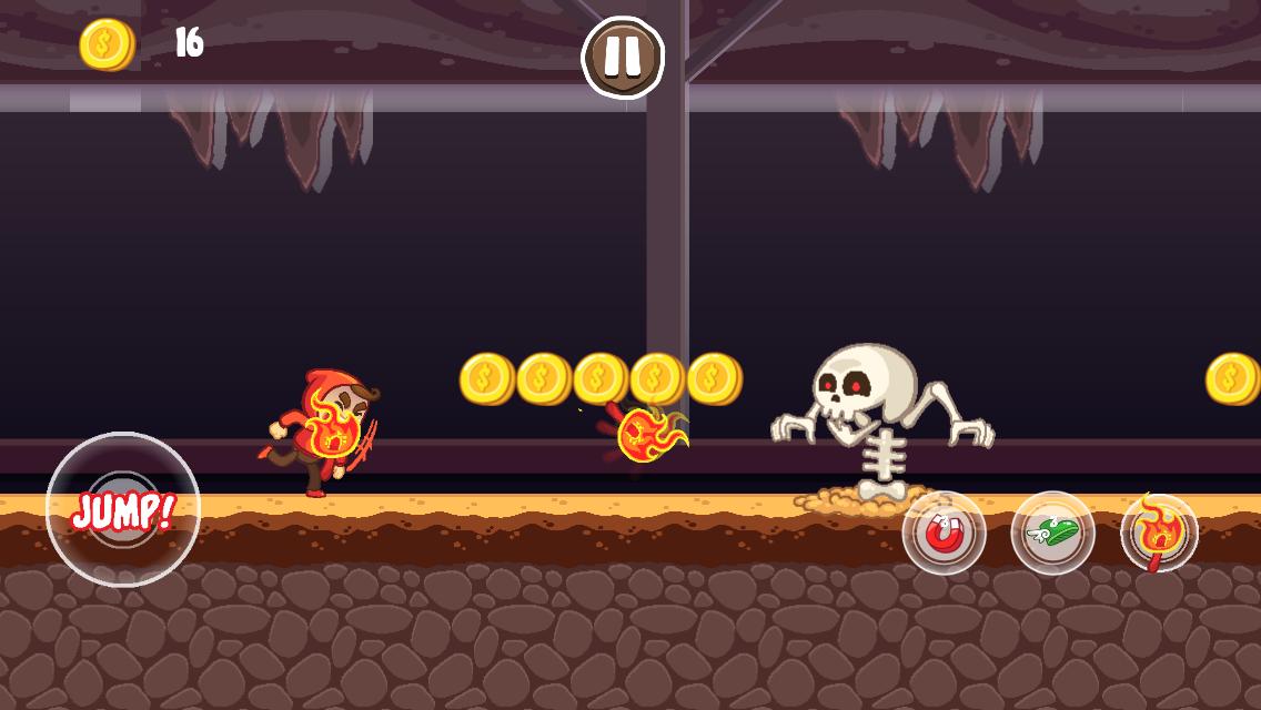 Helfen Sie ihm, diese gruseligen Orte zu werfen, die ihn leiten und den bevorstehenden Geister, Fledermaus und Skelette vermeiden und zerstören.