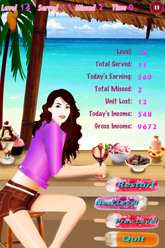 Beginnen wir Ihr eigenes Eisgeschäft. Sie müssen Ihren Kunden nach ihren Bedürfnissen dienen, die aus verschiedenen Eisaromen ausgewählt werden. Sie verdienen Geld für jede perfekte Portion und Verlust auch für die verlorenen Einheiten jeder falschen Aufnahme. Perfekt für Kinder und wer liebt Eisrezepte oder Eisspiele. Einfacher, lustiger und süchtig machender Eis Maker -Spiel für alle Altersgruppen.