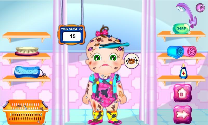 In diesem Spiel sind die Kleidung von Baby Amaz schmutzig und sie hat böse Käfer in den Haaren. Jetzt braucht er ein gutes Schaumbad.