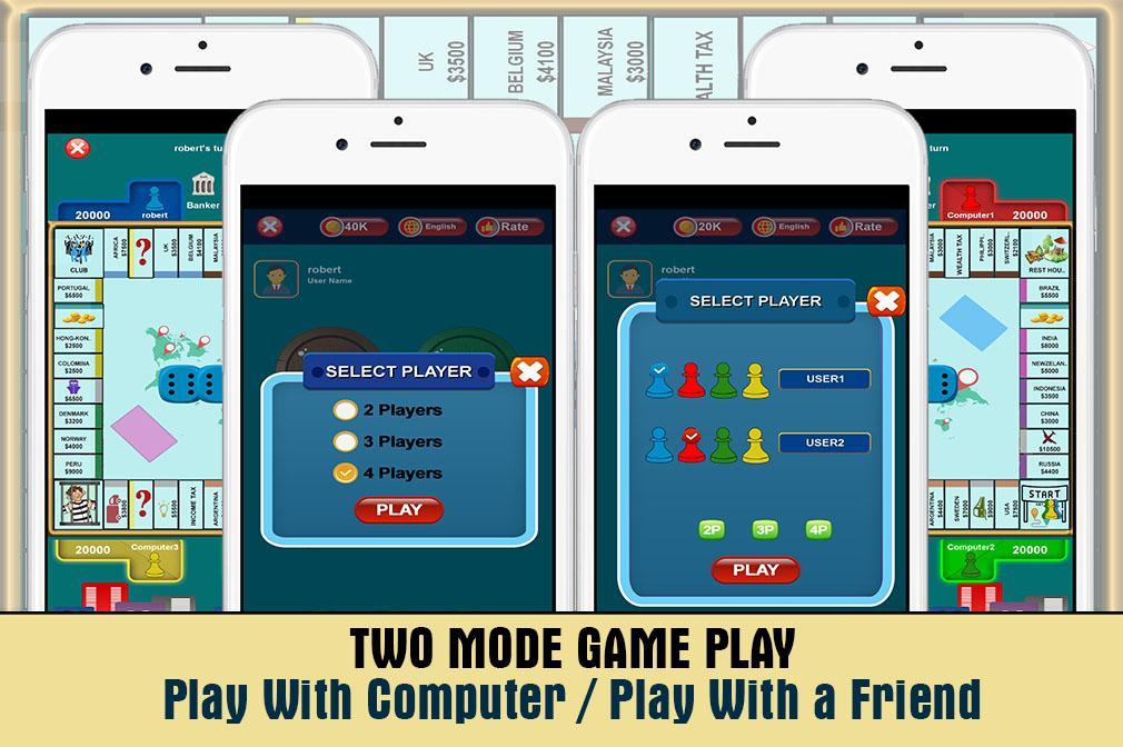 Business Monopoly Board ist ein kostenloses Business -Brettspiel -Würfel. Dies ist ein Brettspiel für 2 bis 6 Spieler. Wenn Sie das Spiel von L eudo oder dergleichen mögen - werden Sie auch Monopol -Könige lieben.