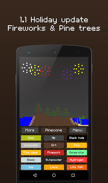Pixie Dust ist ein Echtzeit-Sandbox-Spiel (Pulverspiel), bei dem Sie die Elemente steuern. Erstellen Sie Ihr eigenes Experiment für böse Chemie ... oder blasen Sie einfach alles in die Luft! Pixie Dust hat keine Werbung!