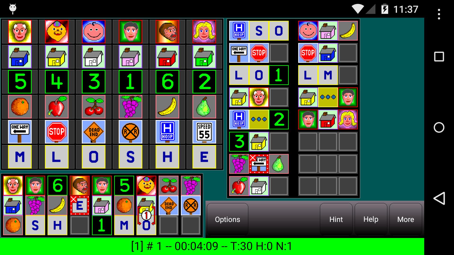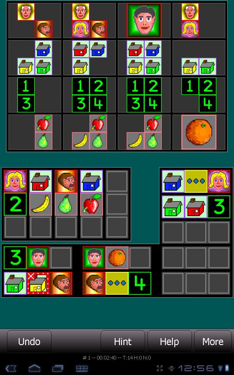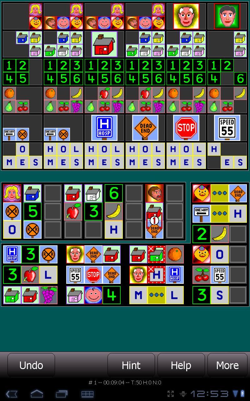 Sherlock ist eine computergestützte Version von logischen Rätseln, in der eine Reihe von Hinweisen präsentiert werden, mit denen Sie die genauen Standorte aller Bilder auf dem Spielbrett bestimmen können. Die Rätsel sind alle 4x4, 5x5 oder 6x6. Jede Reihe des Spielbretts enthält Bilder desselben Typs (Gesichter, Häuser, Zahlen, Obst, Straßenschilder, Buchstaben usw.). Das Spiel krambiert die Stellen der Elemente in jeder Zeile (ohne Ihnen deren Standorte zu zeigen) und präsentiert Ihnen dann eine Reihe grafischer Hinweise, die die Positionsbeziehungen verschiedener Bilder beschreiben. Sie verwenden die Hinweise, um abzuleiten, wo die Dinge nicht sein können (und wo sie sein müssen), bis Sie wissen, wo sich alle Bilder befinden.