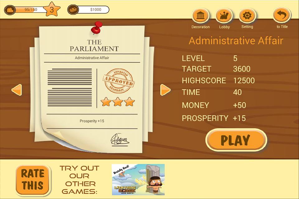 Nach jedem Level werden Sie mehr Dinge freischalten, um Ihren Gerichtsraum nach Ihren Wünschen zu dekorieren und zu sehen, wie Ihr Land des Landes wächst.