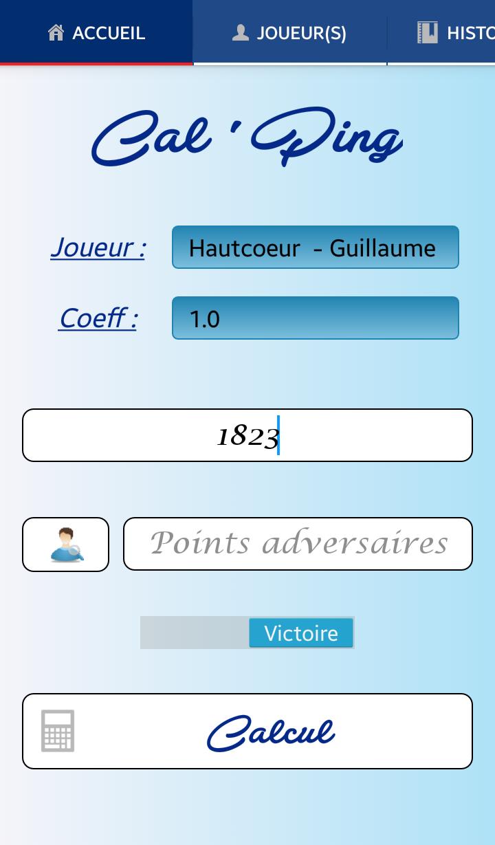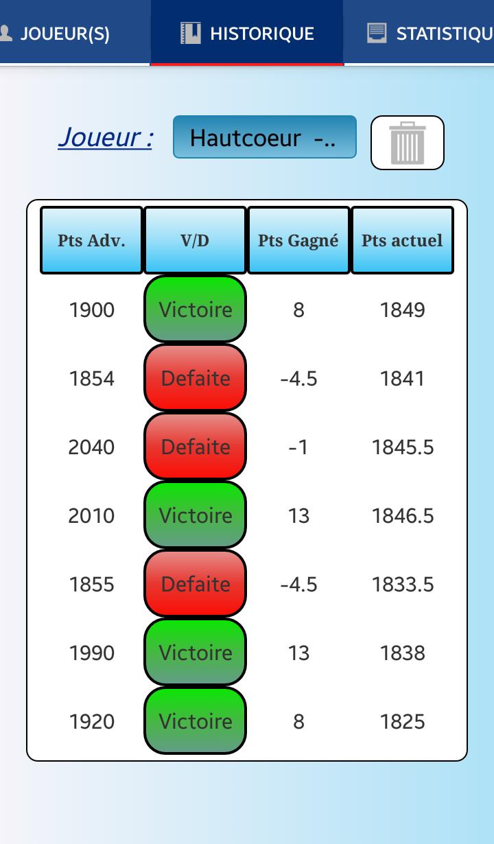 Esta aplicación se volverá rápidamente esencial para cualquier pongista que quiera conocer rápidamente el número de puntos ganados o perdidos. También le permite administrar varios jugadores y tener un seguimiento de cada uno de ellos.