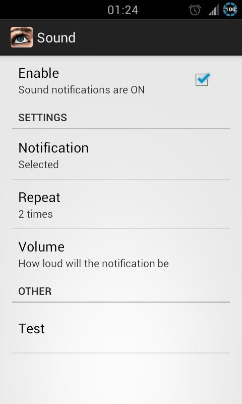 EyeSmile is the ultimate notification tool for helping your eyes rest from long computer monitor staring (using an on/off widget).