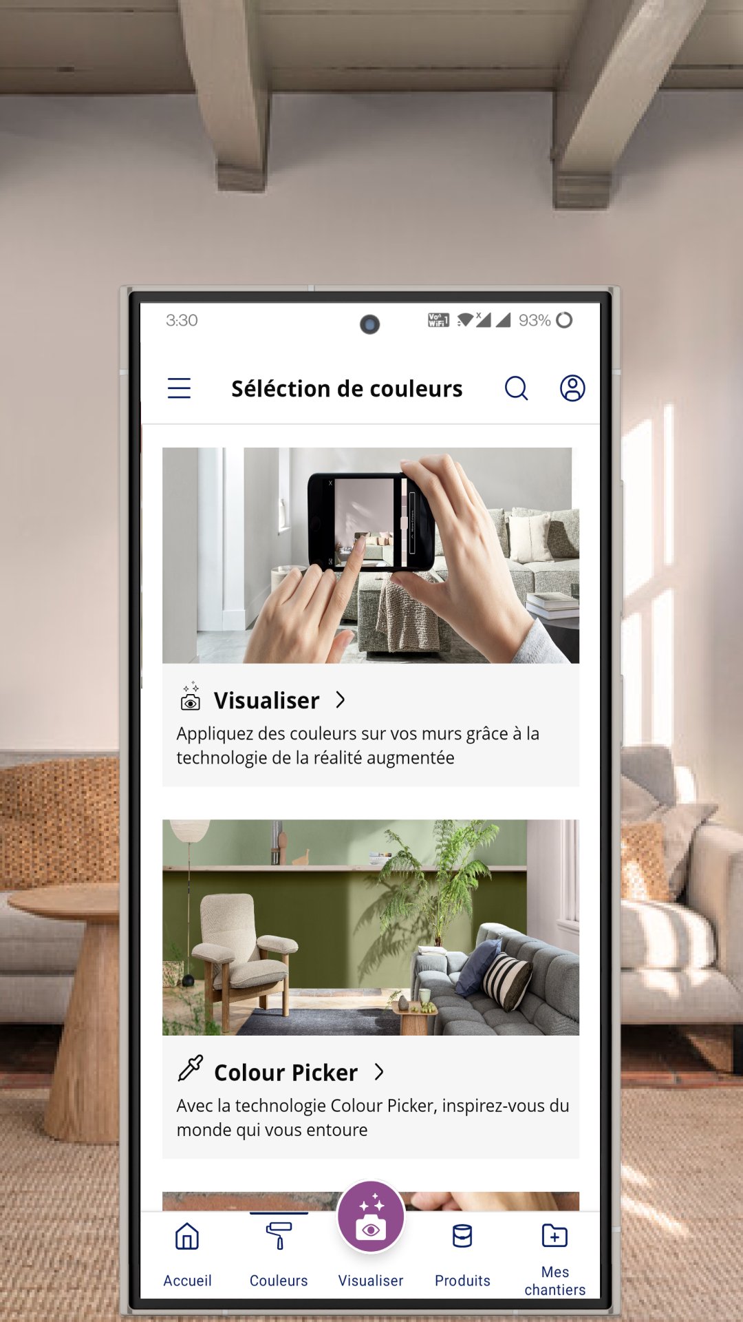 La aplicación incluye el exclusivo Visualizador Experto, una función que le permite a usted y a sus clientes ver cualquier color directamente en su pared en una foto o incluso en un video. Utilizando la exclusiva tecnología de Realidad Aumentada, puede mostrar colores realistas de pintura Sikkens en sus espacios con solo tocar la pantalla. De esta manera, ayuda a sus clientes a experimentar con colores llamativos y a tomar decisiones de color más informadas.
