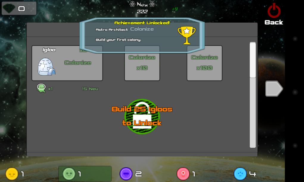 * Acción arcade fácil de recoger, pero infinitamente divertida, que genera recursos incrementales para su civilización. Use estos recursos para construir un imperio cósmico y actualizar su civilización.