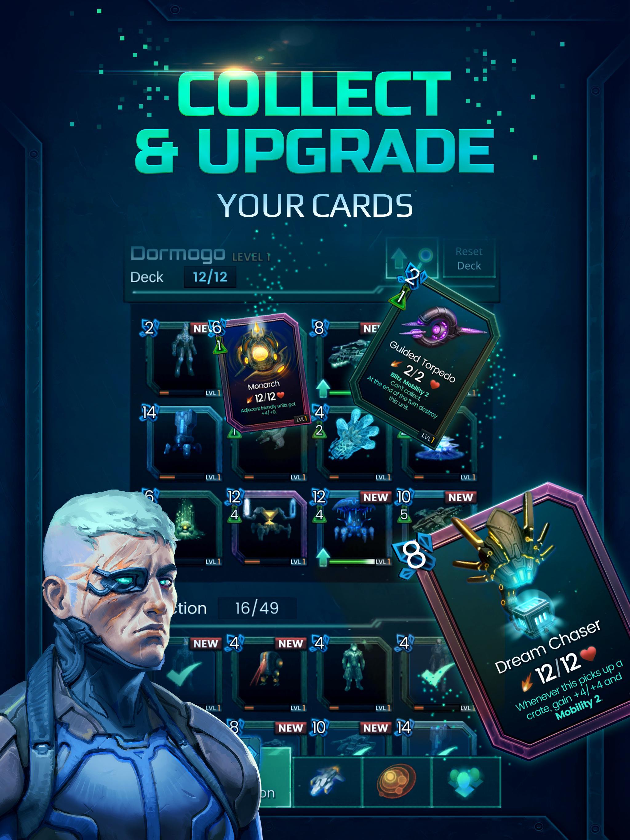 Recopilación y actualización: aumente la fuerza de su imperio desbloqueando y nivelando su colección de tarjetas a medida que avanza