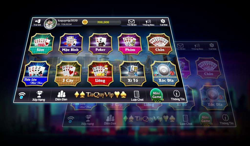 Sigue siendo los mejores juegos como: Xam, Lieng, Tien Len Mien Nam, Xoc Dia, Tai Xiu, Mini Slot ...