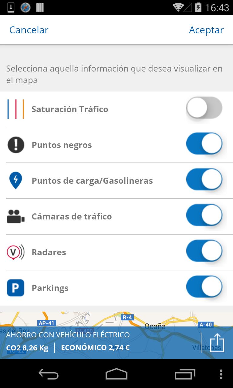 Trafic, stations de service, points de chargement, parkings, restaurants, etc.