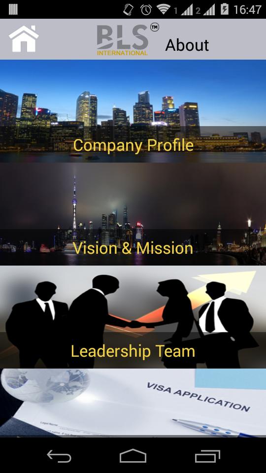 L' BLS Mobile App donne à l'utilisateur l'introduction de BLS International.
