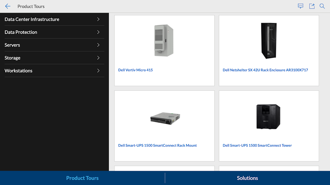 Bienvenue dans l'outil Dell Interactive. Ici, vous trouverez une collection de démonstrations de produits interactives et d'outils de référence pour vous aider à mieux comprendre les produits de Dell .
