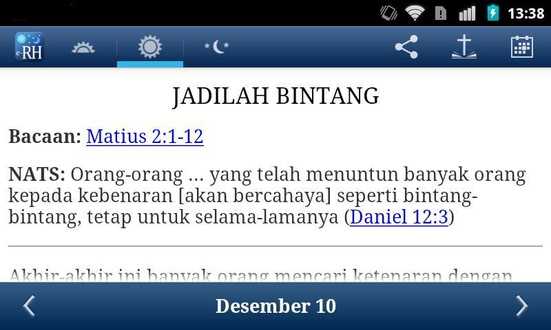 Renungan E-RH PSM est une application biblique de dévotion quotidienne de trois en un, avec trois lectures différentes pour chaque partie de chaque jour - matin, après-midi et soir - de sorte que chaque jour vous êtes rempli de la parole de Dieu et de sa justice!