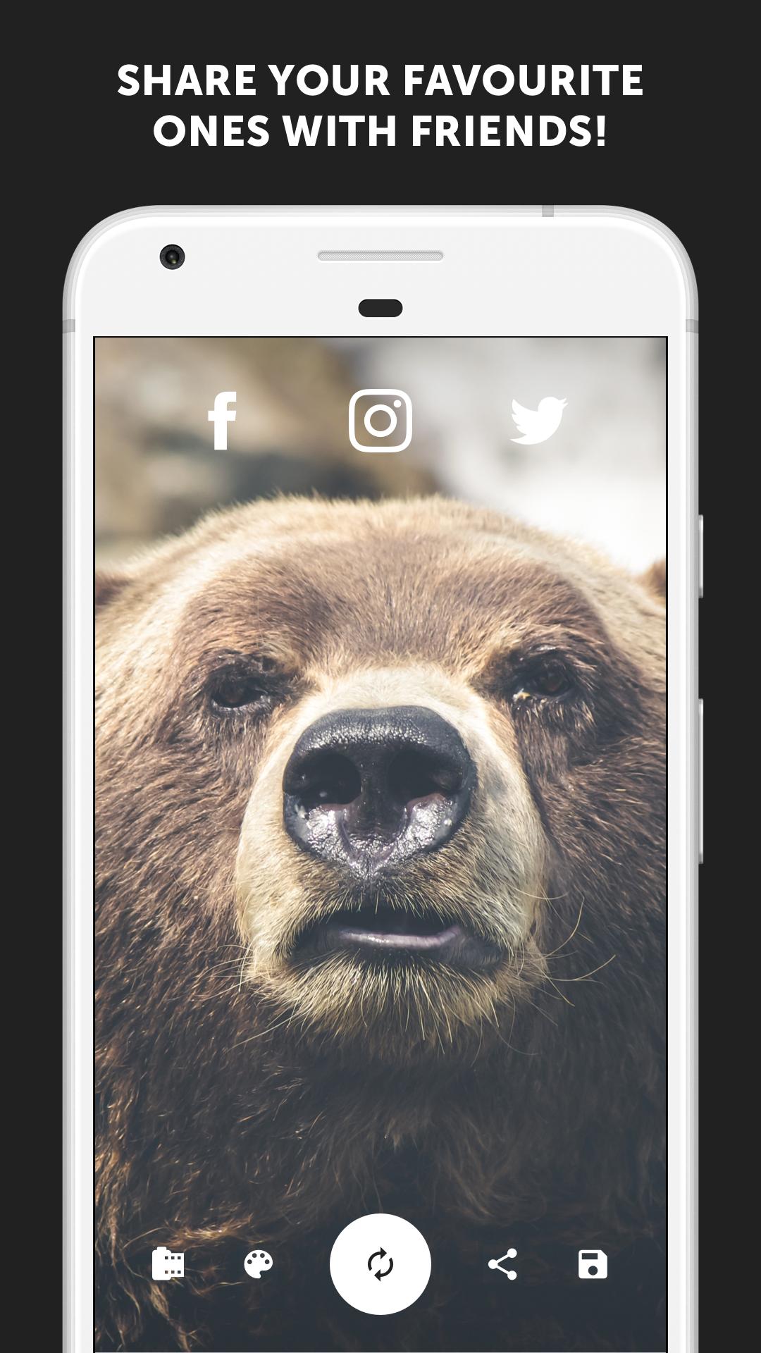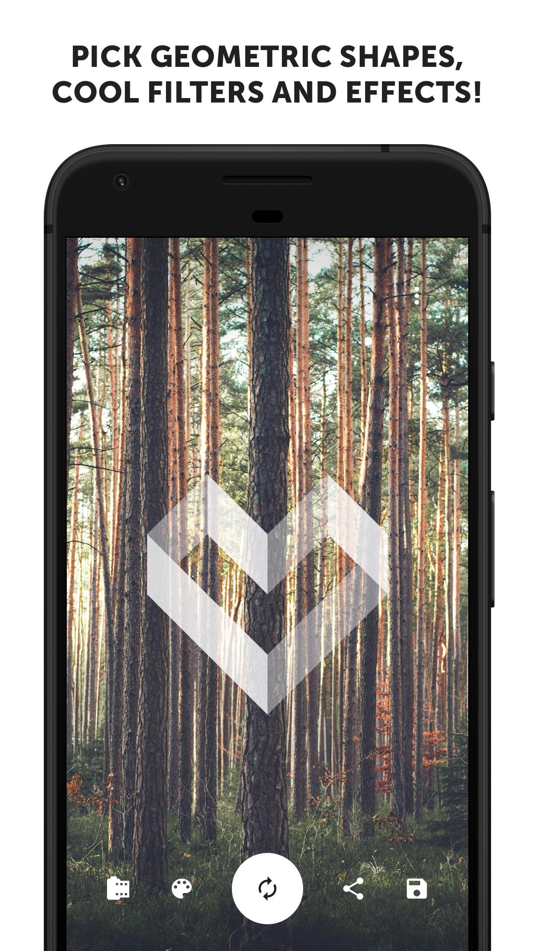 • Fltres et effets incroyables - lavés, assombri, saturés, retournés, floues, etc. Vous pouvez désactiver la superposition de forme filtrée sur des arrière-plans, allez simplement dans les paramètres.
