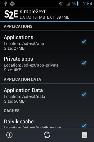 L'application installe un script, qui vous permet de déplacer les applications, les données et un cache vers la partition SD-Ext et le dos. Vous pouvez spécifier ce qui doit être déplacé à partir de l'application.