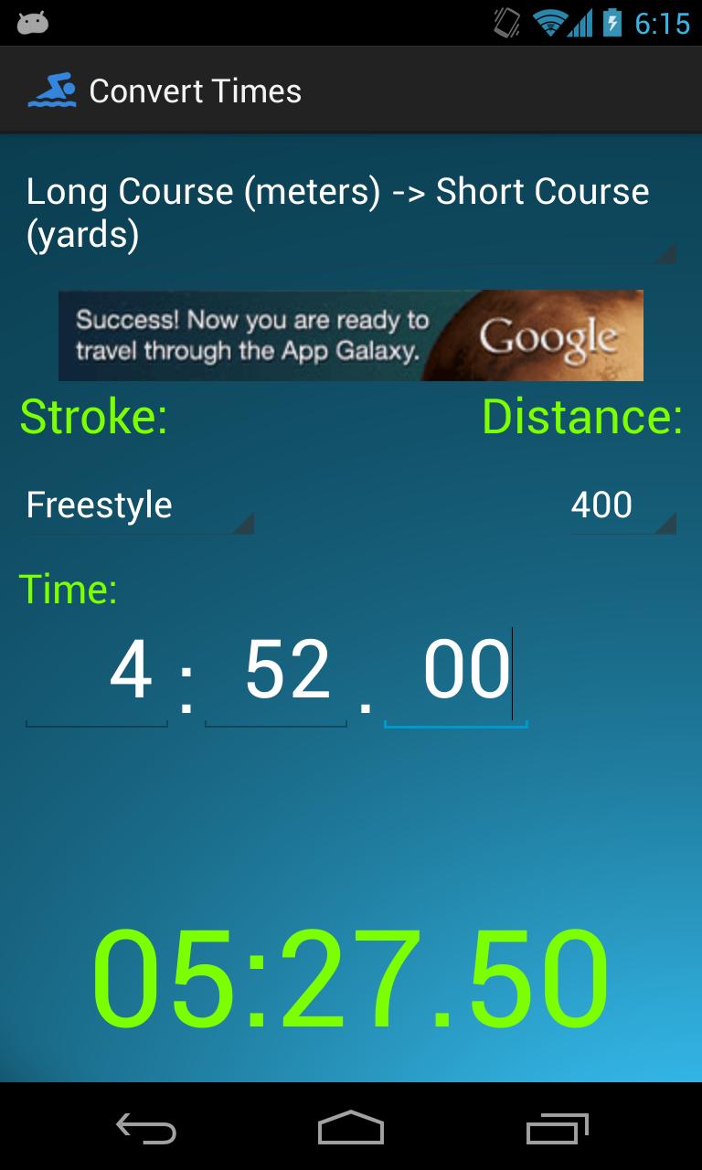 Application simple pour calculer votre rythme sur une distance donnée. Vous venez de terminer une course et vous voulez savoir quelle était votre scission moyenne par 50? Entrez simplement votre distance de course et votre temps total et l'application fera le reste pour vous!