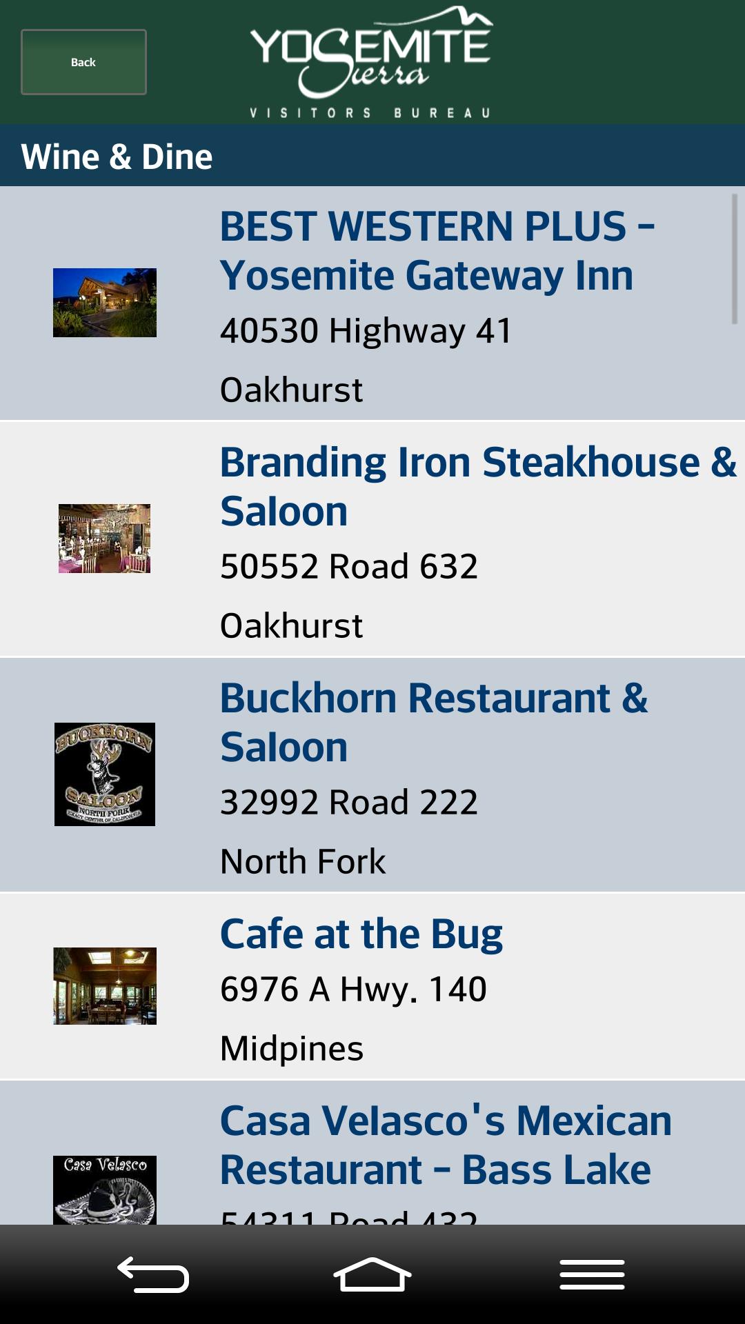 Cette application fournit tous les outils et informations nécessaires pour vos vacances de la région de Yosemite. Accès facile à l'hébergement, aux attractions, à la nourriture, au vin, aux itinéraires et plus encore.