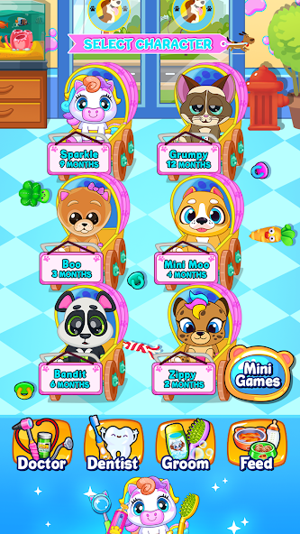 Les soins aux nouveau-nés de Baby Pet sont là! Soyez un vétérinaire médecin et dentiste avec des bébés animaux! Nourrir et marié 6 nouveau-nés! Aidez-les à se sentir mieux!