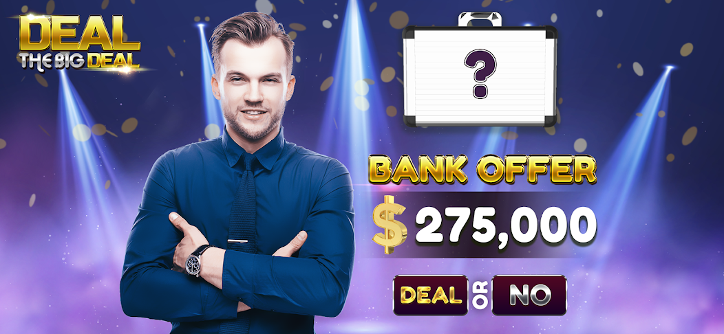 Deal The Big Deal est un jeu télévisé où les concurrents rivalisent pour 1 million de dollars en choisissant une mallette contenant un montant en espèces inconnu. Ils doivent éliminer d'autres malformateurs et décider de prendre des offres de "" le banquier "" qui essaient d'acheter votre cas choisi. Le jeu devient plus intense à mesure que des montants de trésorerie précieux sont révélés. Les candidats peuvent voir si Fortune favorise les audacieux.