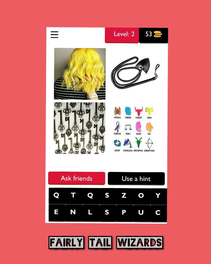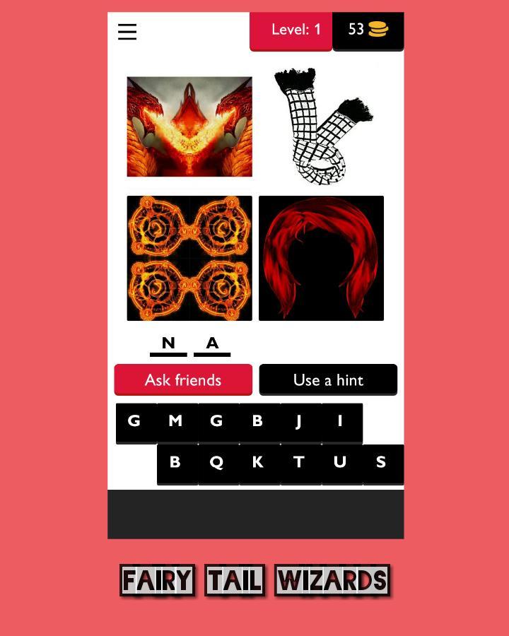 Fairy Tail Wizards vous apporte un jeu où vous pouvez deviner vos personnages de queue Fairy (Wizards) préférés à l'aide de 4 photos.