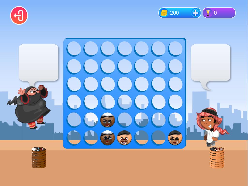 Profitez du jeu du monde "Connect 4" avec les personnages du jeu "devant". Jouez seul ou choisissez parmi quatre personnages: Strawberry, Rashid, Umm Al -dahab ou Ali et défier vos amis dans un jeu distinctif et différent!