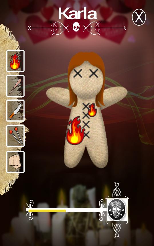 Utilisez les différents outils de torture pour Lukumi tels que les aiguilles, les couteaux, le feu et plus de choses pour nuire à l'avatar, ce qui le fera trembler et crier de douleur. Utilisez tous les outils Conga tels que les baisers, les caresses, les cadeaux pour le remplir avec beaucoup d'amour et vous faire rester à vos côtés.