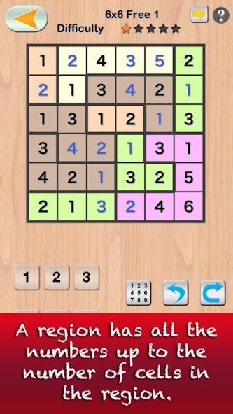 Ripple Effect est un puzzle logique avec des règles simples. Le puzzle se compose d'une planche rectangulaire divisée en "pièces". Chaque pièce doit être remplie de chacun des nombres de 1 au nombre de cellules dans la pièce. Si deux nombres identiques apparaissent dans la même ligne ou la même colonne, au moins que de nombreuses cellules avec d'autres nombres doivent les séparer. Par exemple, si deux 4 apparaissent dans la même ligne, ils doivent être séparés par au moins 4 cellules.
