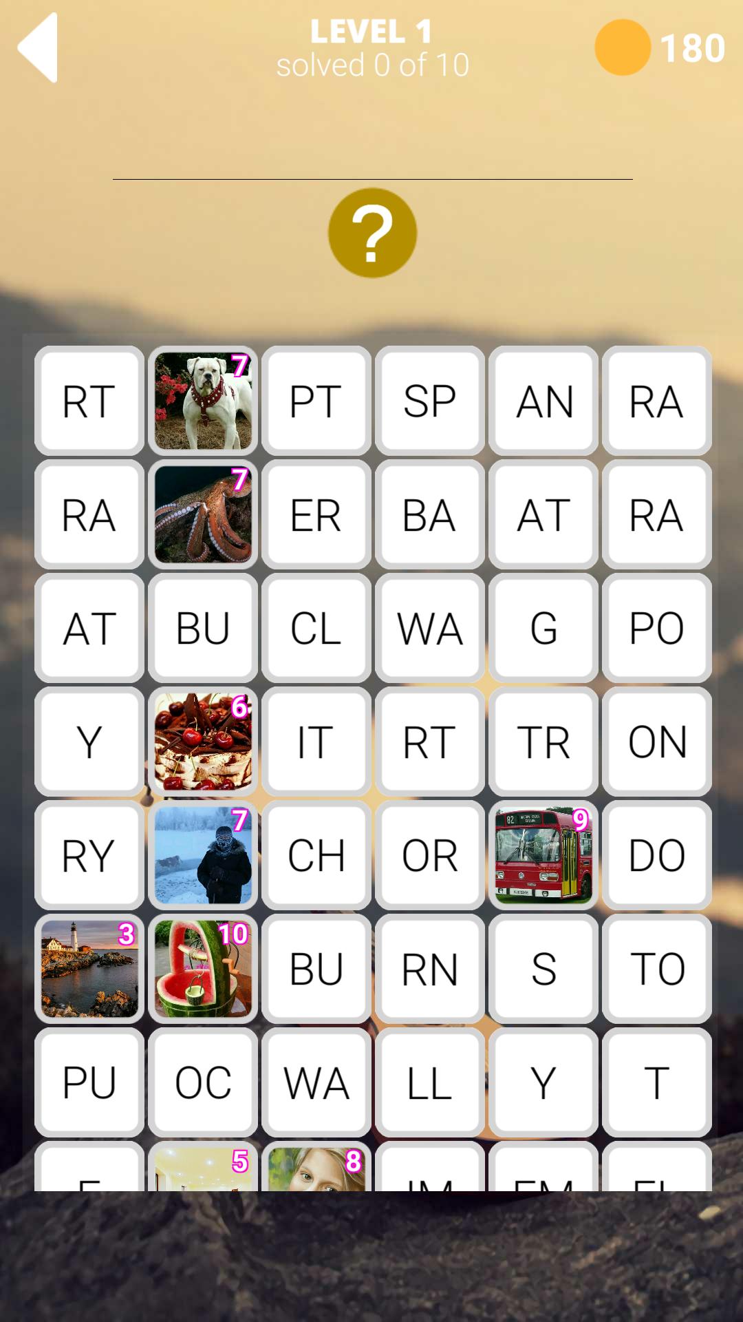 The game process is divided into two types, each level consists of twenty words, the lessons of the game are divided into photos and the answers to them that are broken into syllables, your task is to look at the photo to guess and compose a word from syllables, when you click on any photo the picture can be increased. This wonderful game was created to play in the company of friends, family and friends. Play in English, German, Spanish, Russian and French.