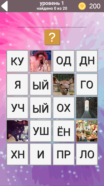 At each level, you have 20 photos available, with which you must guess 20 hidden words to complete the level. Photos are opened one at a time, and you have access to a certain number of photos.as you guess them, others will be available to you. The game is available in 7 languages: English, Russian, Spanish, Italian, Portuguese, German, and French.