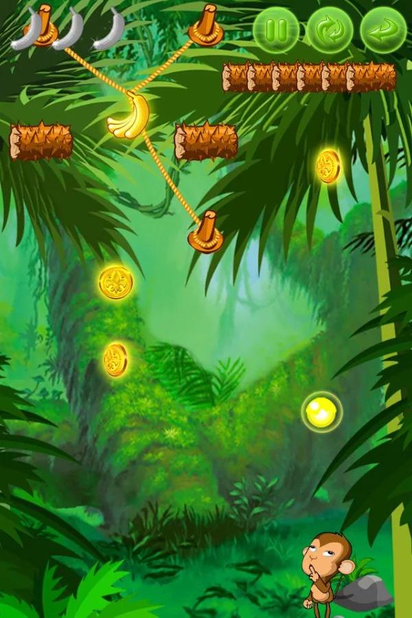 Help the ape cut the bananas that are hanged on the ropes.