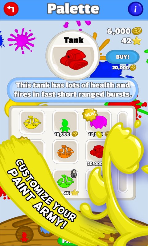 Test your skills in Survival Mode and unlock terrific new troops! Rise to the top, and unlock new paint creations like the Battle Ship or Tank! Blast your opponents away with the ultimate units of paint warfare!