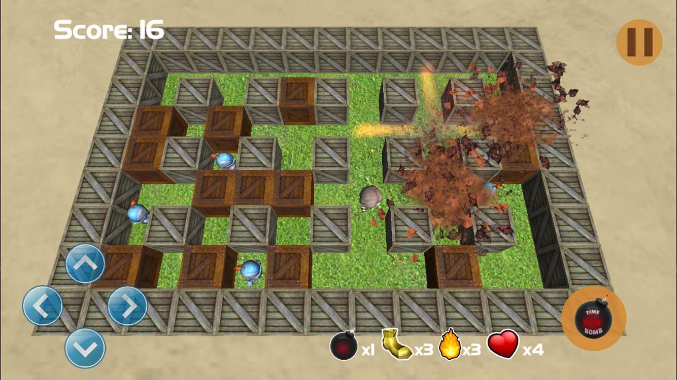 Players go to the mysterious labyrinth, and explore it. In the maze has many pitfalls, monsters guarding. Equipped with only an explosive bombs, the player must find the key to exit the maze. Step into the maze of players facing the pitfalls, and the dangerous beast, you must avoid the pitfalls, kill enemy. Pick up the items when the brick broken for more weapons.