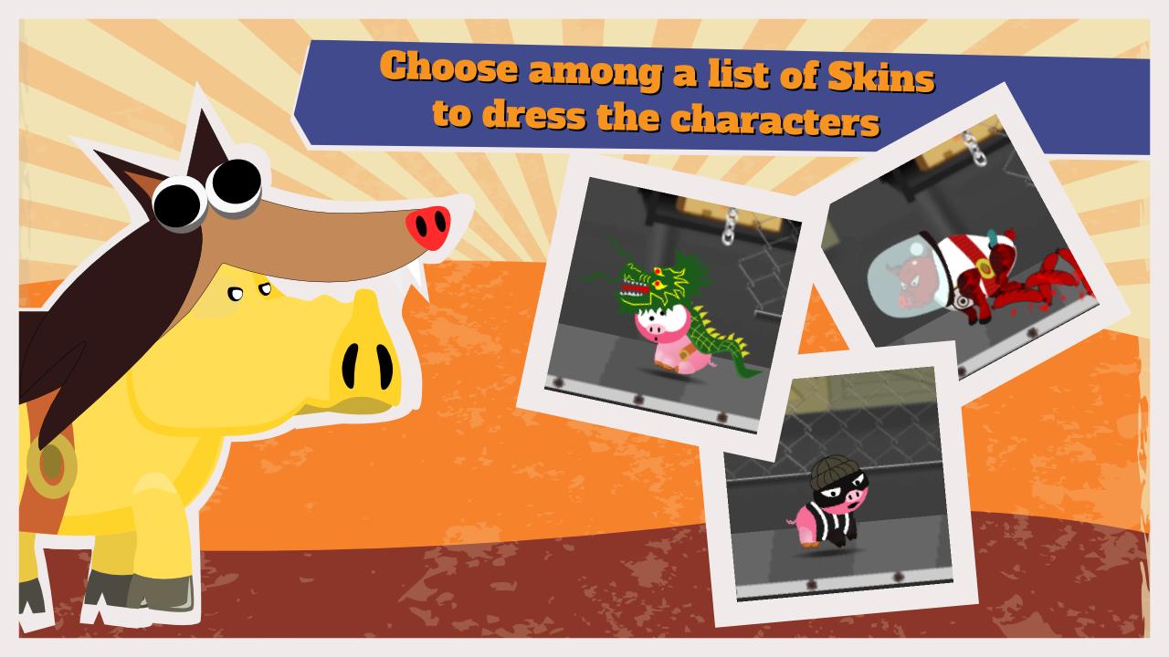 Customize the pig using the different options available. Do you want to be a chef? maybe a ninja? even an astronaut! the new skins list is amazing, and also let you customize your enemies.