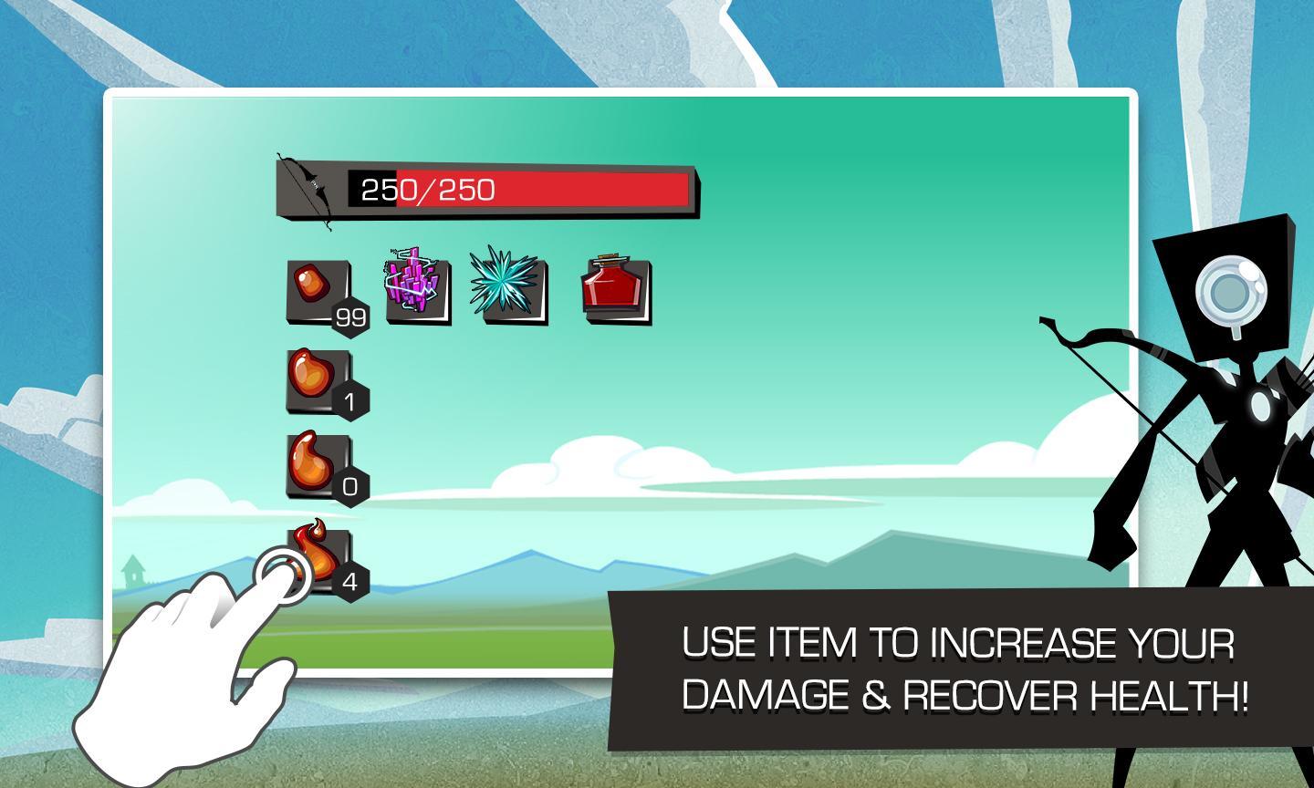 Based on classic Bowman Game but much more challenging than the classic one. Now we have 15 stages with different bosses, four different enhancement items and more equipment. Defeat the bosses to find your destiny. This is not an easy game. Try your best to stand to the end.