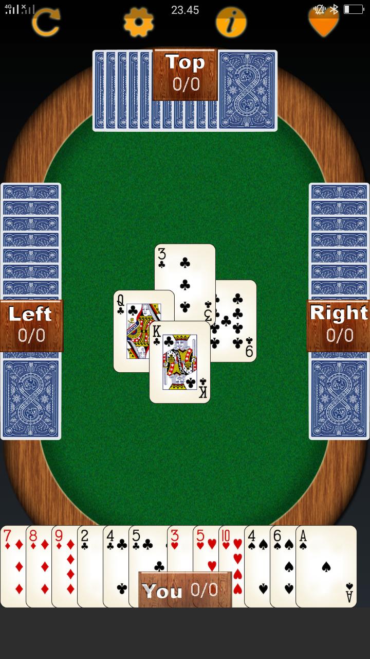 This game is normally played by 4 people using a standard international 52-card pack.