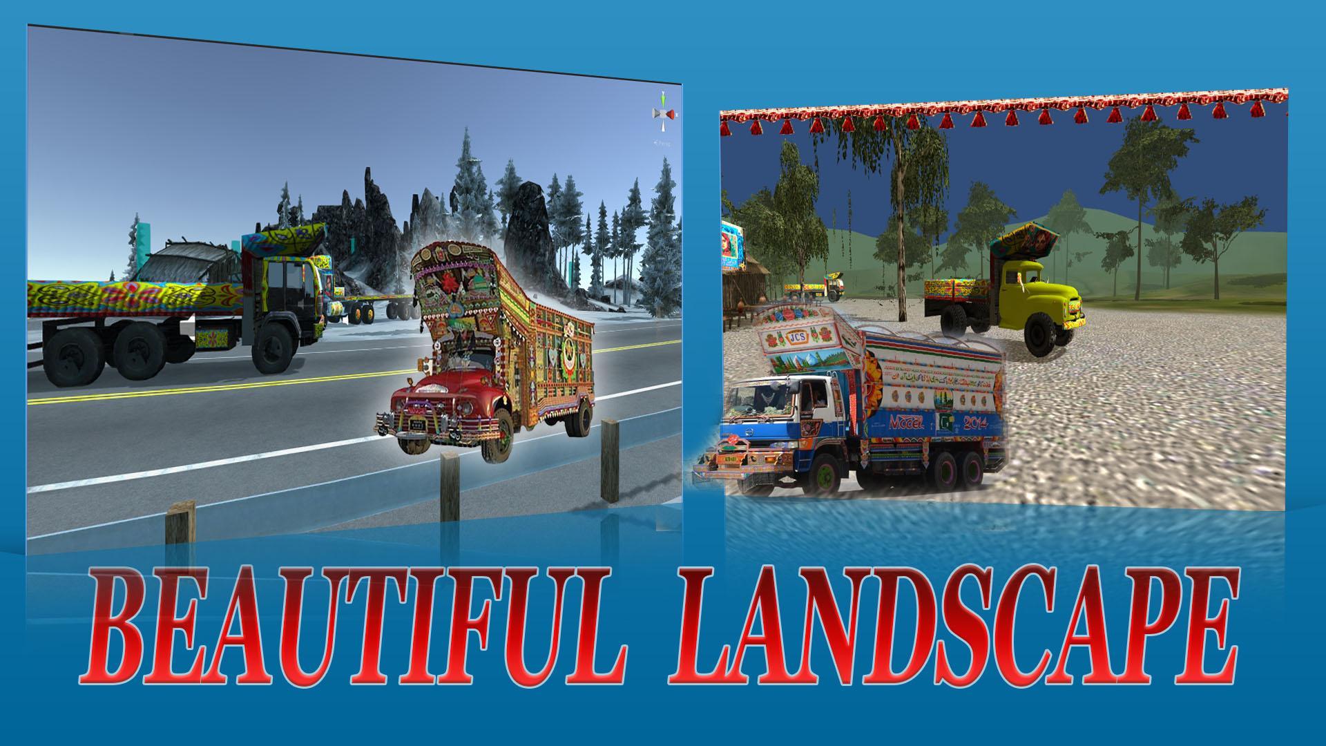 Pak Transport Truck Driver Duty game is made for truck transporters' fans. PK Transport Truck Driver Duty game lets you become a real Pakistani truck driver as you have to achieve your goal. This truck racing game is most awaited truck simulation with playback hit local Pakistani songs and local art decoration of the truck. You will face extreme hill roads, jumps, mountains, deserts and jungles while truck driving experience which is really exciting. To achieve your objective, transport different logs carefully. It will be best truck transporter experience for you by crossing highways, mountain adventure, desert, offroad truck drive and forest truck driving. You will enjoy like a real Pakistani Truck Driver to drive big trailer and Bedford trucks. As per your mission, you will travel Kashmir to Karachi through different northern areas, crossing river bridges, motor way, GT road with excellent background music in this hill climb truck drive. PK Transport Truck Driver Duty game is made to show you a real life of a Pakistani transport Truck Driver who drives different trucks in different routes of Pakistan, so you play truck transporter game to deliver cargo and keep eye on the suspects!!! You will be assigned tasks in all provinces of Pakistan, Punjab, Sindh, Khyber, Blochistan and Kashmir to deliver logs through heavy trucks from one region to other. If you are looking truck simulations games, truck cargo drive, wood cargo truck drive, PK truck driver, truck parking, pak truck driving, truck racing game then paki transport truck 3d game is for you. Enjoy best heavy truck race experience having multiple features, functions and controls. Become a true paki truck driver, install this truck simulation exciting game and done your job at time. You cargos include; dairy milk transport, zoo animals transport, tractors transport, cars transport, steel pipes and wood transport. Park truck successfully in the truck parking area in each level to unlock beautiful portray painting trucks by using truck driving skills which shows Pakistani culture and design. Accept the challenge and must try this long truck driver game.