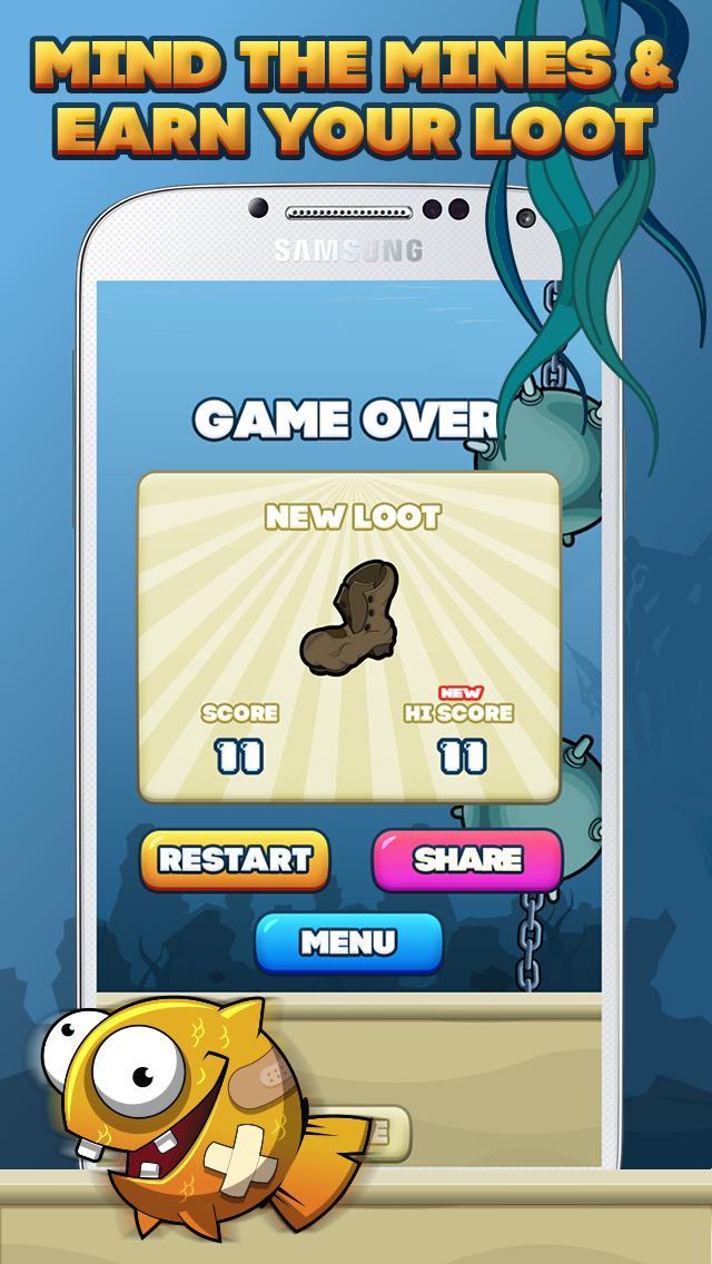 Swimming through the endless big blue sea comes Clumsy Fish. This cute little under-dogfish will have you “Scaling” for your best score. Just flap his little fins and guide him through the dangers of the deep, it’s so simple it will drive you crazy! So take the bait and get hooked, you’ll have a “whale" of a time!