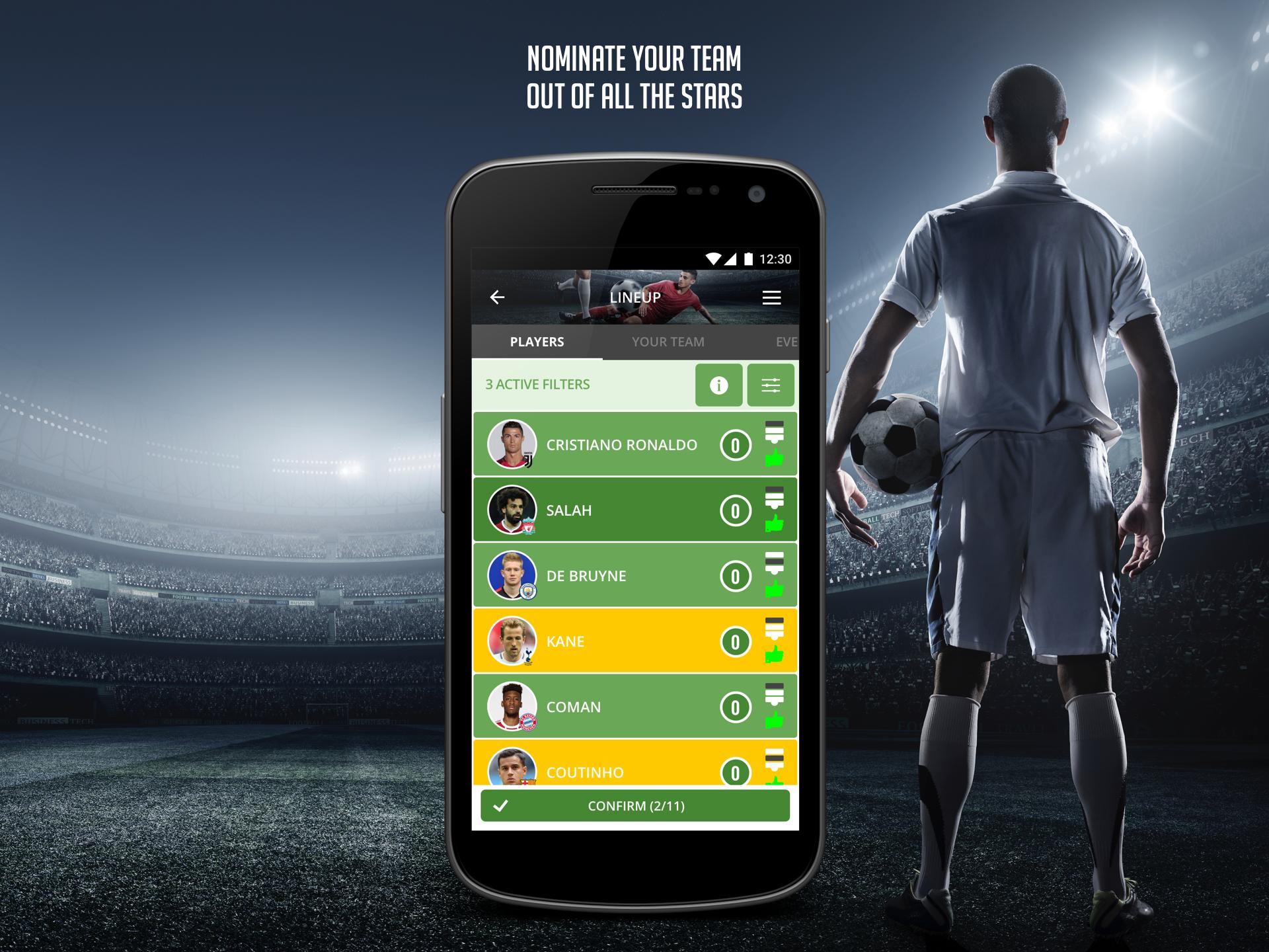 Get points for the real performances of your players, outperform your competitors and climb to the top of the world ranking. Prove now, that you are a real football expert, matchday for matchday and tournament for tournament.