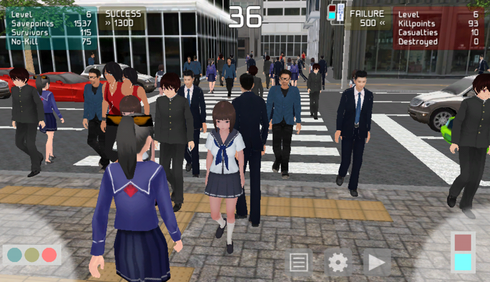 Your objective is to earn 'Savepoint' by letting pedestrians and cars pass safely.